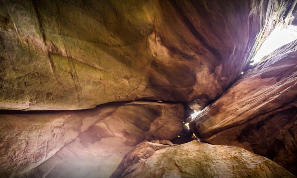 Edakkal Caves, located 1,200 meters above sea level on Ambukutty Hill, are the only known Indian site with Stone Age carvings. These petroglyphs are believed to date back to 6,000 B.C. The caves are 3 km from Ambalavayal and 25 km from Kalpetta.