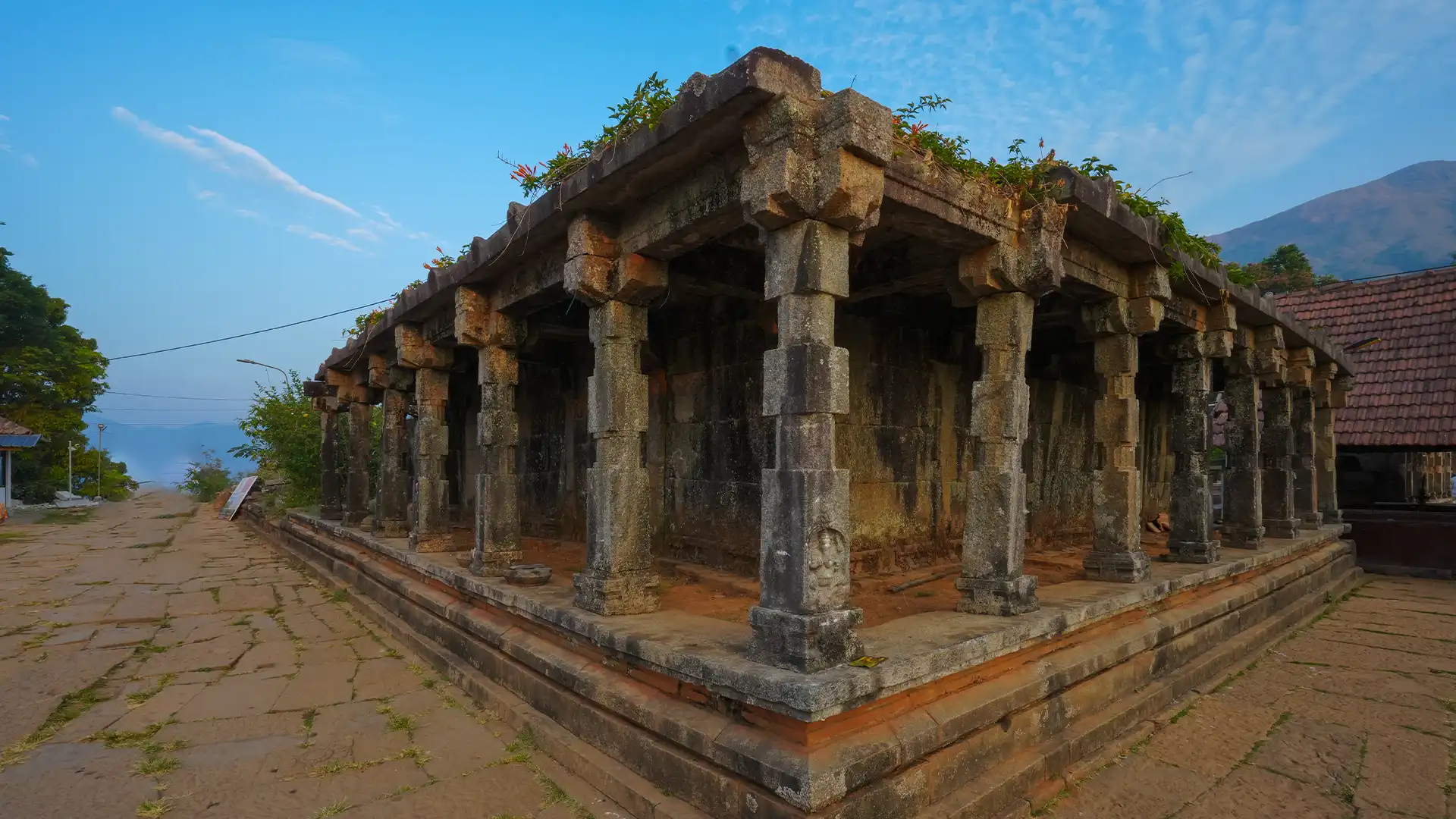 Thirunelli Temple, dedicated to Lord Maha Vishnu, is situated at 900 meters altitude in North Wayanad. A stream called Papanasini flows beneath the temple. The temple lies 32 km from Mananthavady, surrounded by lush forests and hills.